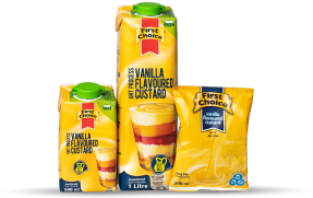 Smooth Texture, Irresistible Vanilla Flavour: First Choice UHT Vanilla Custard is a treat for every occasion, offering a smooth texture with a delightful vanilla flavour. Enjoy it straight from the box, hot, or cold – the choice is yours. Available in 1-liter or 500ml packs, our custard is the perfect companion for any dessert, delivering an irresistible taste that truly feels like love.